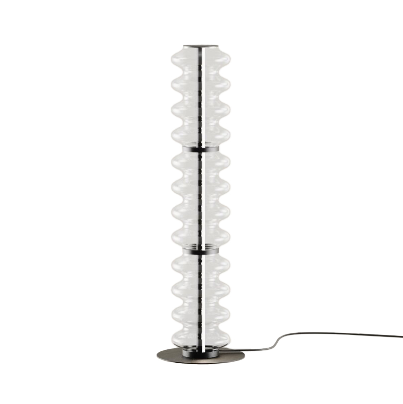Aromas Del Campon Vitree on näyttävä lattiavalaisin, jonka aaltoileva lasimuoto tuo tilaan veistoksellisuutta ja 70-luvun vintage-henkeä. Pitkänomaisen rakenteensa ansiosta se sopii täydellisesti olohuoneeseen, aulaan tai ravintolaympäristöön. Metalliosat ovat valittavissa kultaisina tai mustina, ja himmennettävä valo luo oikean tunnelman jokaiseen hetkeen.